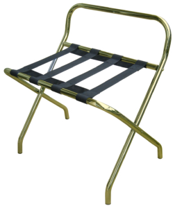 Soporte para maletas con respaldo metálico dorado