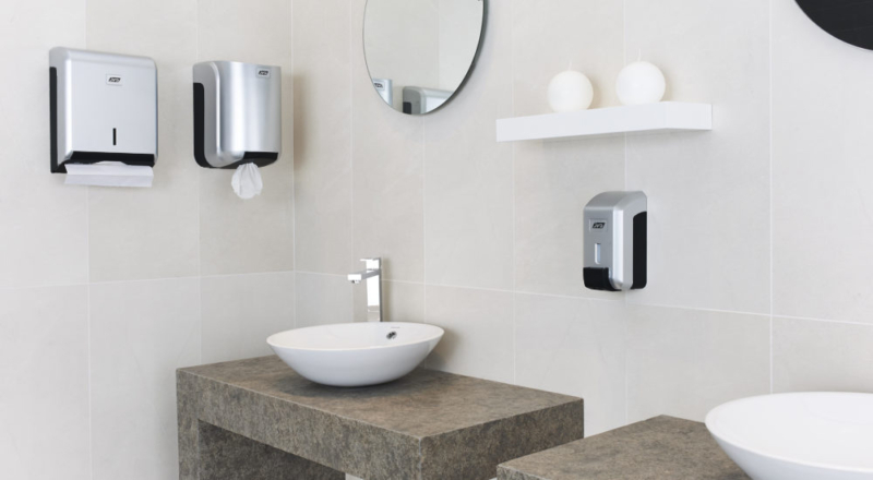 Cleanline JUMBO Hygienic Paper Dispenser for 200m reels Metallic Gray. Chuck diameter 45mm. Made from 100% recycled plastic.
