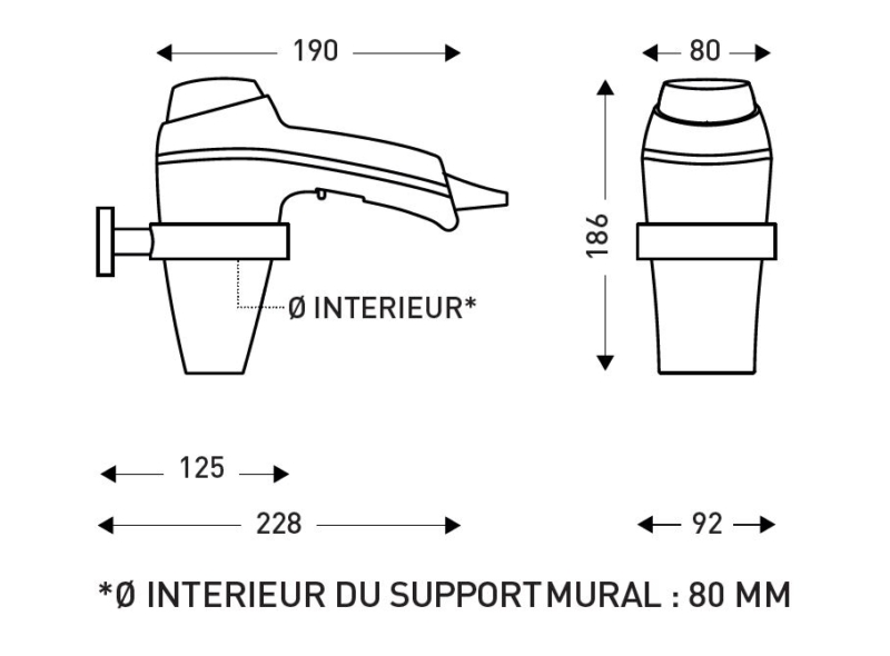 Dimensions | Product height (mm) : 190Product width (mm) : 186Product depth (mm) : 80 |