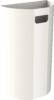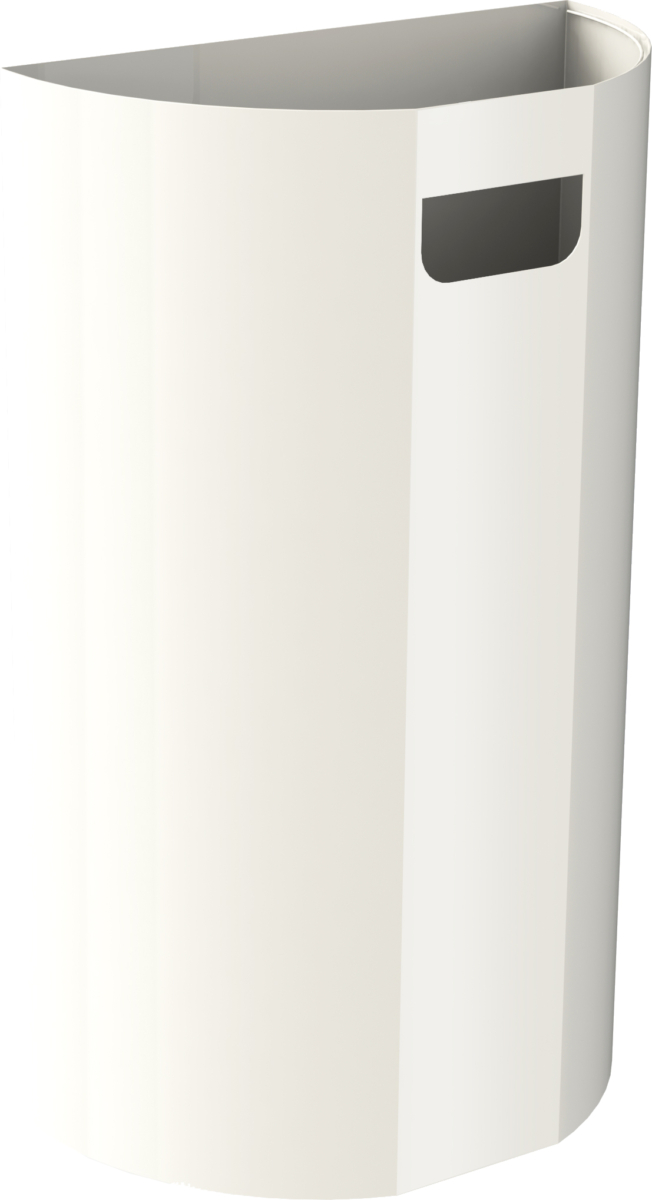 40L white half-moon wall-mounted trash can in epoxy painted steel with a non-edged edge.