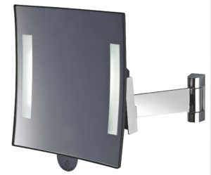ECLIPS mirror round bright with flat arms with a magnifying vision x3. Works with 1 supplied 3.6v lithium battery and allows installation without electrical connection. The mirror is equipped with a time delay of 3 min. Flat chrome brass arm, 3 joints. Switching on by sensory system.