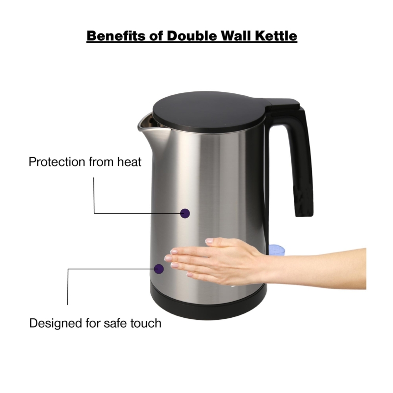 - Double wall: Quieter, holds heat longer, no risk of burns