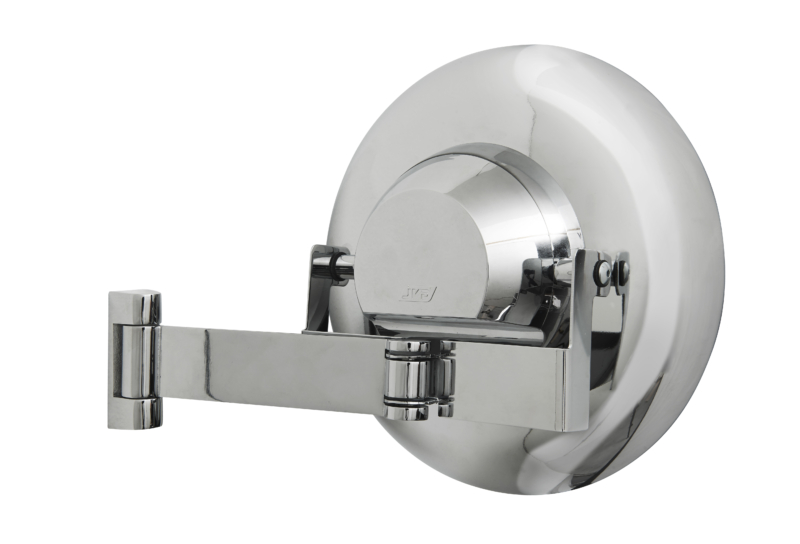 Chrome luminous Cosmos mirror flat arm with magnifying vision x5. Works with 1 supplied 3.6v lithium battery and allows installation without electrical connection. The mirror is equipped with a time delay of 3 min. Tubular chromed brass arm with 4 articulations. Switching on by sensory system