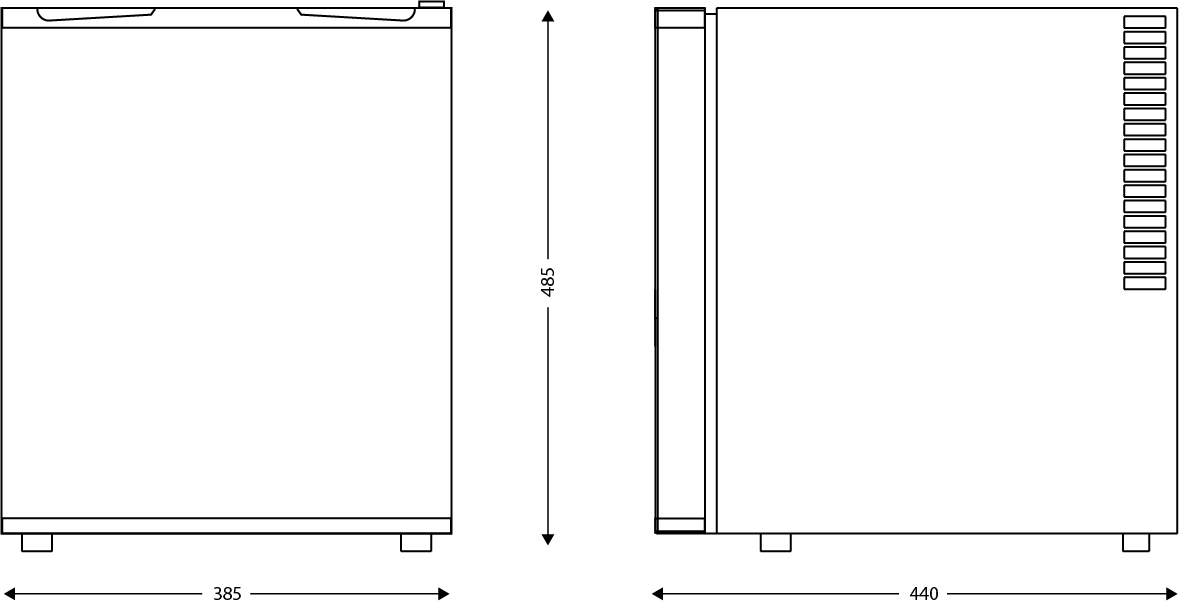 Dimensions | Product height (mm) : 480Product width (mm) : 380Product depth (mm) : 440Internal product height (mm) : 360Internal product width (mm) : 295Internal product depth (mm) : 270 |