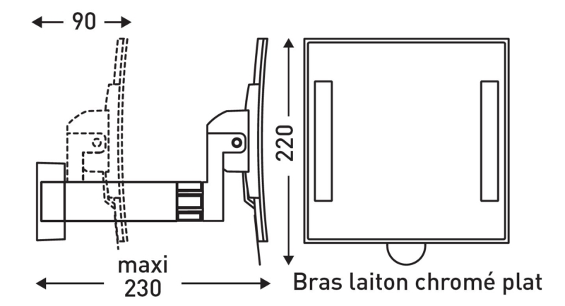 GALAXY mirror with a flat arm and magnification x3. Works with 1 supplied 3.6v lithium battery and allows installation without electrical connection. The mirror is equipped with a time delay of 3 min. Flat chrome brass arm, 3 joints. Switching on by sensory system.