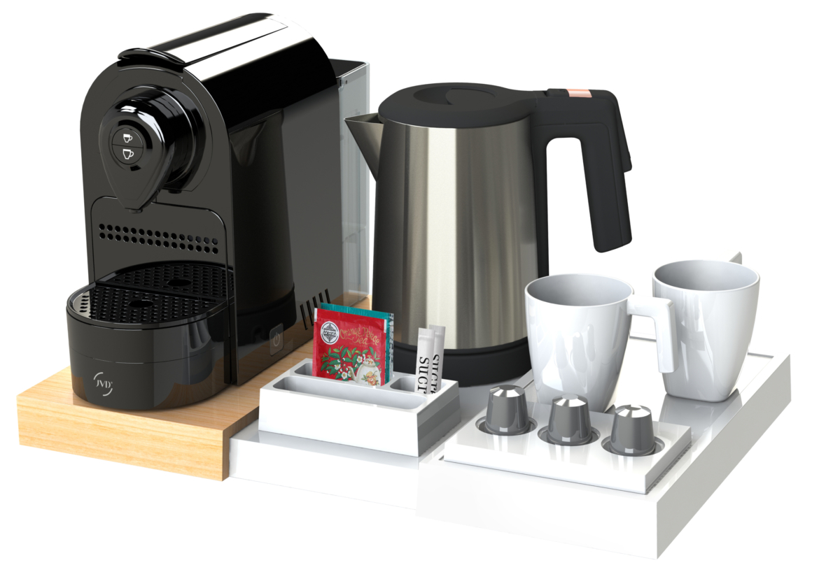 Orchestro Second modular white melamine reception desk to welcome a coffee machine or a kettle.