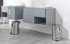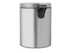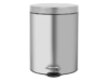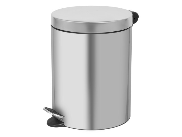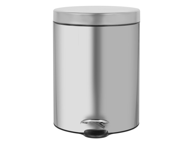 Metal Pedal bin 5L stainless steel mirror. Metal exterior and black plastic inner tray. Rubber protection at the base. Made in Europe