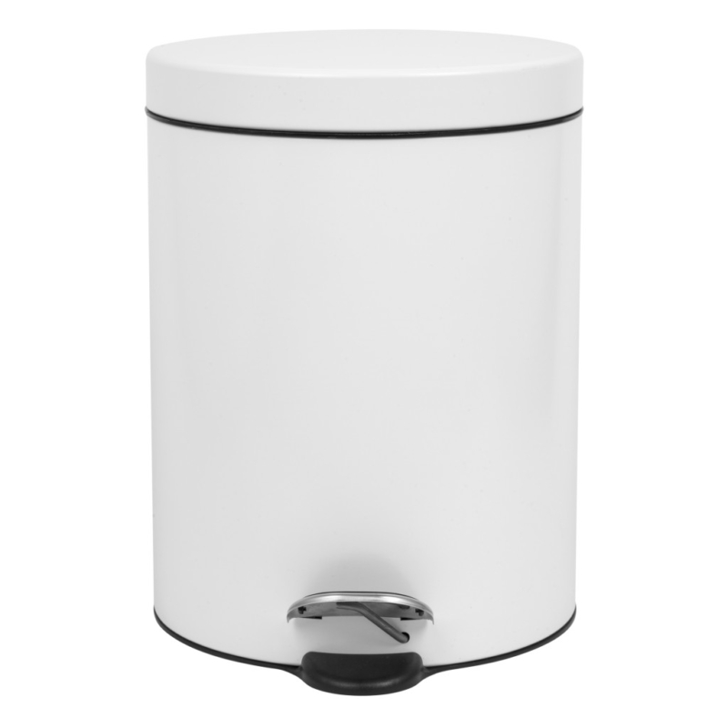 COLLECTOR pedal 5L white metal. Metal exterior and black plastic inner tray. Rubber protection at the base