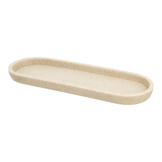 Adesign Savanna Rectangular Tray: Elegant and practical, this natural sand finish melamine tray with rounded edges combines modern design and safety. Ideal for adding a refined touch to your bathroom.