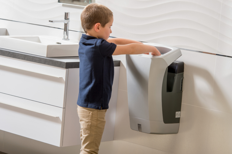 Stell'Air automatic white hand dryer with forced air and bactericidal copper filter. Silent (73 dB) and anti-vandalism (IK10). Equipped with a water recovery tank or a direct evacuation solution (optional). 3 years warranty.