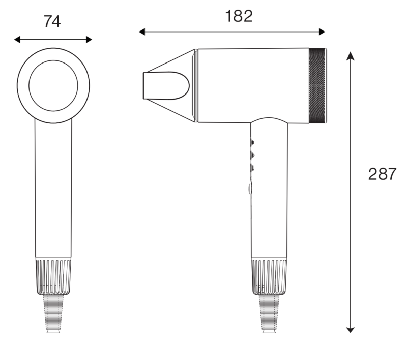 - Guest-friendly controls: 4 airflow settings - 3 heat levels + cool shot, magnetic nozzle, clear LED display.