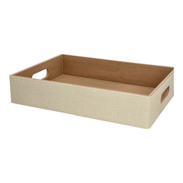 Tray with handles Adesign Kaizen: Elegant and functional, this synthetic leather tray with two-tone finish (beige jute and light wood) is perfect for presentation or service. Its integrated handles make it easy to carry while adding a modern, refined touch.