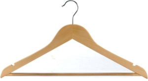 Percha con pinzas de madera natural para armario, con barra y muescas.