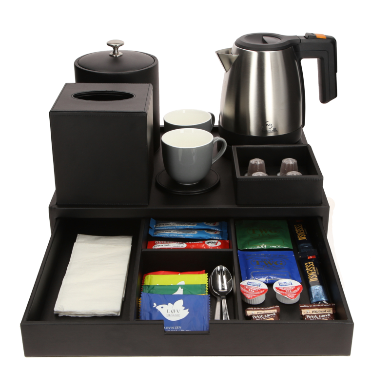 Bandeja Charme con cajón en polipiel. Muy resistente y fácil de mantener.