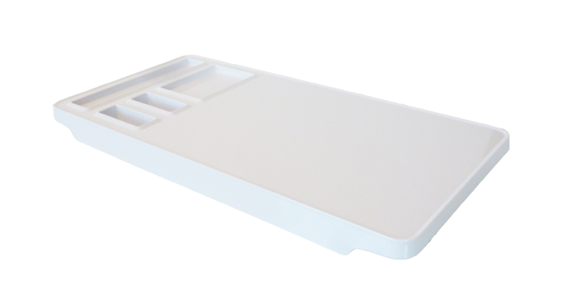 Bandeja Maestro blanca con ranuras integradas para sobres, resistente a las quemaduras y con acabado anti-manchas.