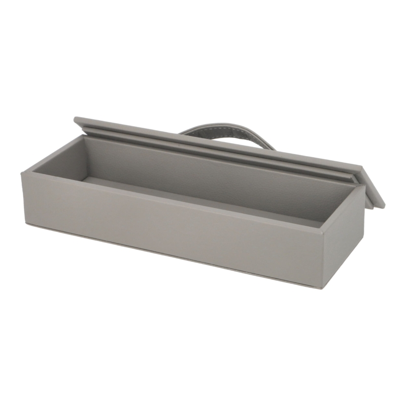 Caja rectangular Adesign Anglo: acabado en cuero gris claro para un estilo elegante y refinado. Ideal para guardar un mando a distancia u otros accesorios, aporta un toque de lujo discreto a cada habitación, combinando practicidad y sofisticación.