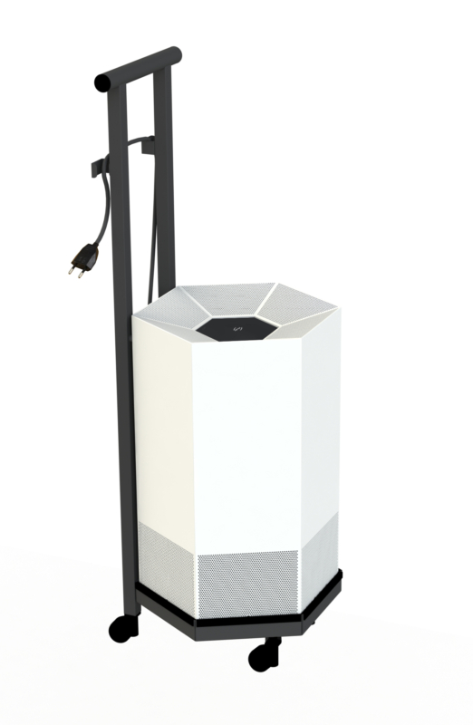 Descubre el carro de transporte Shield para una solución de purificación móvil. Diseño de Ramy Fischler y fabricado en Francia.