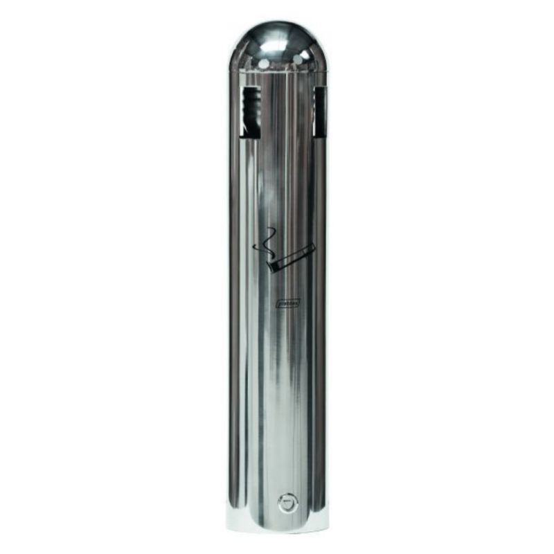 Cenicero tubular mural 1,8L en acero inoxidable 304. Diseñado para limitar la infiltración de agua de lluvia. Embudo interior para sofocar rápidamente el humo. Construcción robusta en acero inoxidable 304. Kit de fijación a pared incluido.
