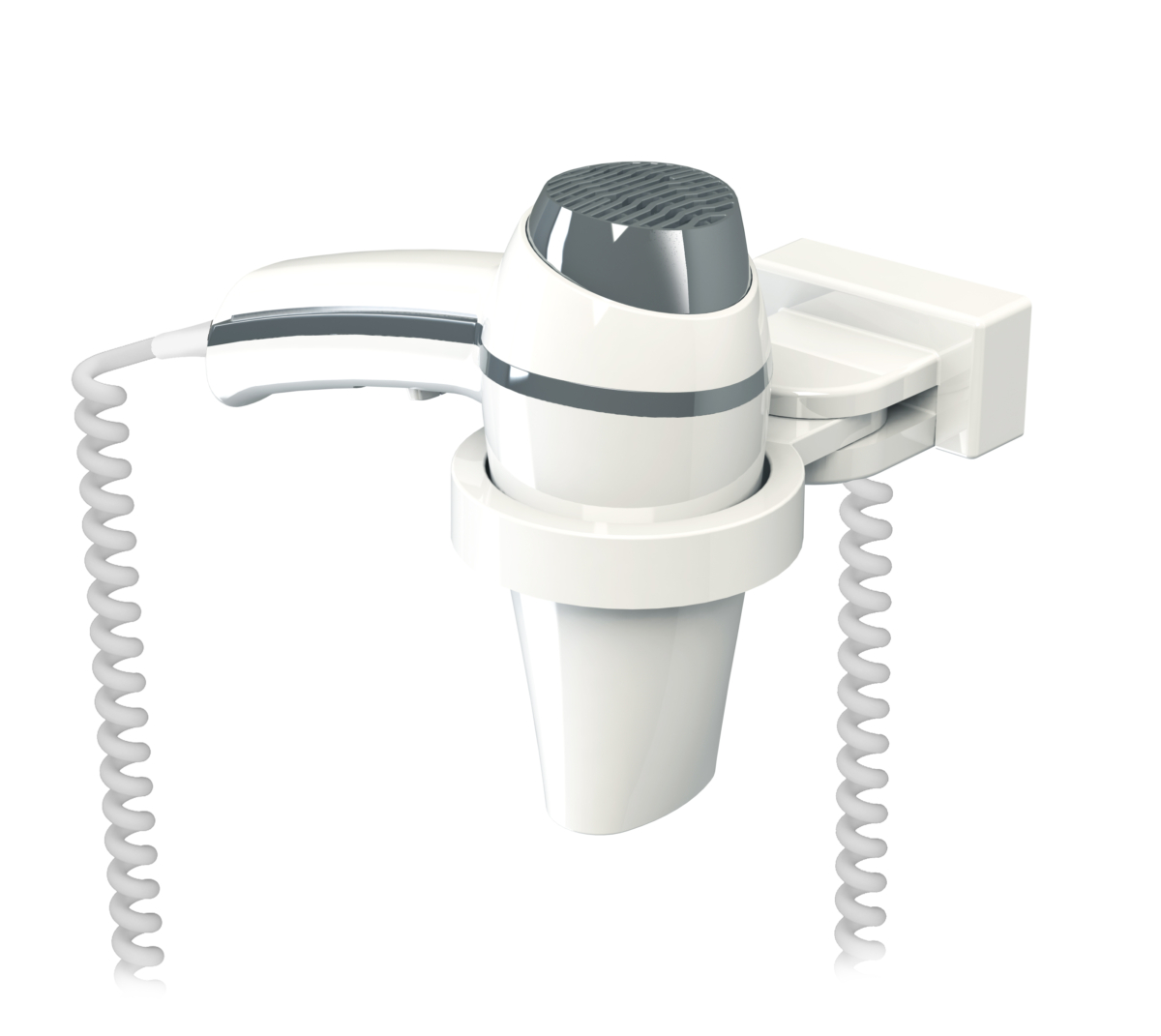 Kit secador de pelo Clipper blanco 1400 W con soporte universal precableado para una instalación rápida, orientable a 180°. Puesta en marcha con solo tomarlo gracias a su empuñadura patentada LighTouch. 6 configuraciones de secado y equipado con sistema ionizador. Concentrador integrado en el diseño. Fabricado en Francia.