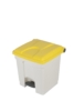 Contenedor 30L blanco con tapa amarilla. Contenedor a pedal con cierre automático de la tapa e incluye adhesivos para reciclaje selectivo.