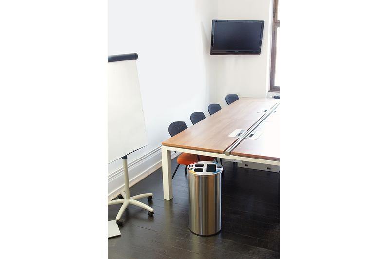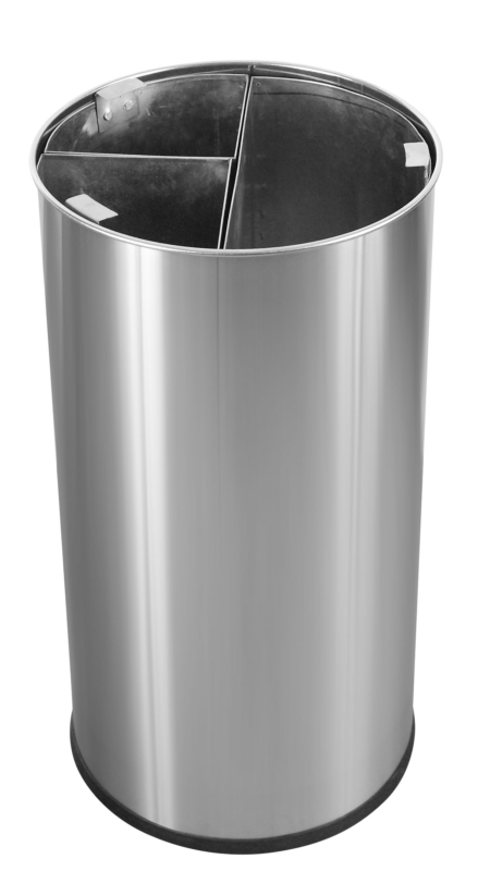 Contenedor 60L de acero inoxidable cepillado con 3 cubetas: 2 compartimentos de 15L y 1 compartimento de 30L. Las cubetas son extraíbles y de acero galvanizado. Se suministran adhesivos de separación selectiva.
