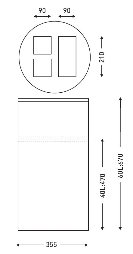 Dimensiones | Alto del producto (mm) : 670Ancho del producto (mm) : 355Profundidad del producto (mm) : 355Diámetro (mm) : 355 |