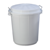 Contenedor de residuos redondo 70 L blanco con tapa. Equipado con asa ergonómica y clips de fijación en acero galvanizado para mantener la tapa en su sitio.