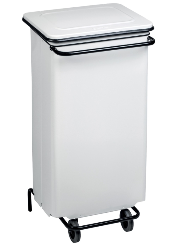 Contenedor móvil de 110L blanco en acero. Apertura frontal para facilitar la evacuación de la bolsa de residuos.