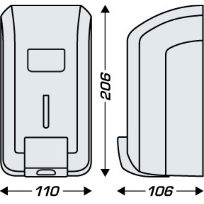 Dimensiones | Alto del producto (mm) : 206Ancho del producto (mm) : 110Profundidad del producto (mm) : 106 |