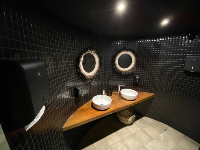 Dispensador de jabón gel Cleanline negro 700 ml con pulsador y depósito extraible. Cierre con llave. Fabricado en plástico 100% reciclado