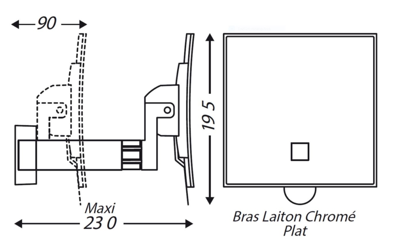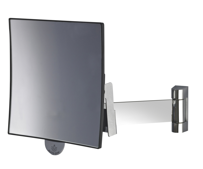 Espejo Galaxy cuadrado simple con brazo plano y aumento ×3. Brazo plano de latón cromado con 3 articulaciones.