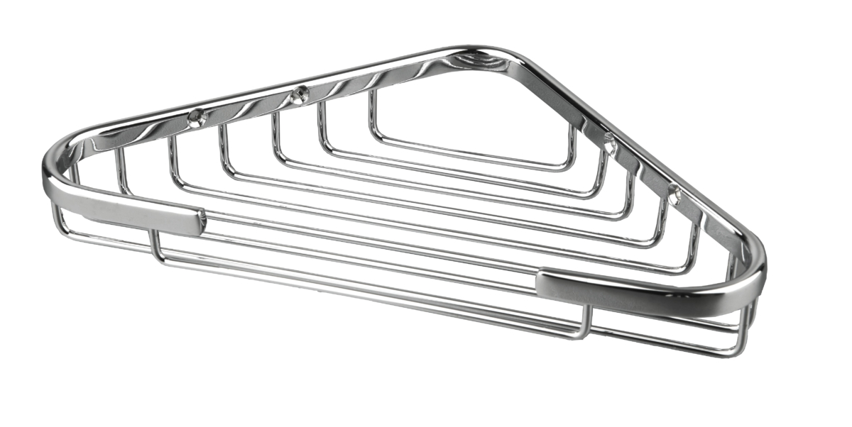 Estante para jabón de esquina en acero inoxidable para baño. Diseño simple y depurado.