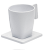 Taza de 200 ml con platillo blanco Maestro. Resistentes y fáciles de limpiar.