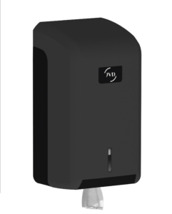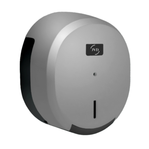 Dispensador central Mini Cleanline blanco. Capacidad para bobina de 200 servicios (diámetro 130 mm). Fabricado al 100 % en plástico reciclado.