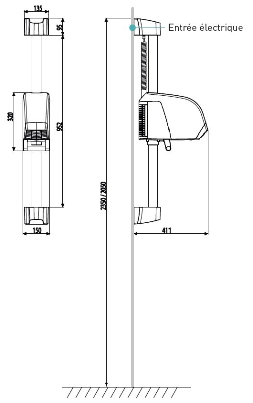 Dimensiones | Alto del producto (mm) : 1153Ancho del producto (mm) : 150Profundidad del producto (mm) : 411 |
