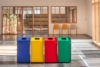 Papelera de reciclaje blanca de 80L con amplia apertura frontal para facilitar la extracción de la bolsa. Disponible en varios colores para crear islas de reciclaje.
