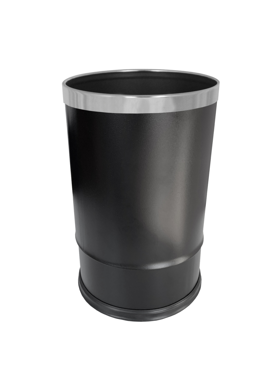 Papelera redonda 10L negra con doble pared que permite ocultar la bolsa y mantenerla en su sitio.
