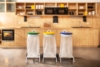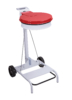Porta-bolsas redondo móvil blanco con tapa roja. Pedal ancho para facilitar la apertura. También disponible en varios colores para la recogida selectiva.