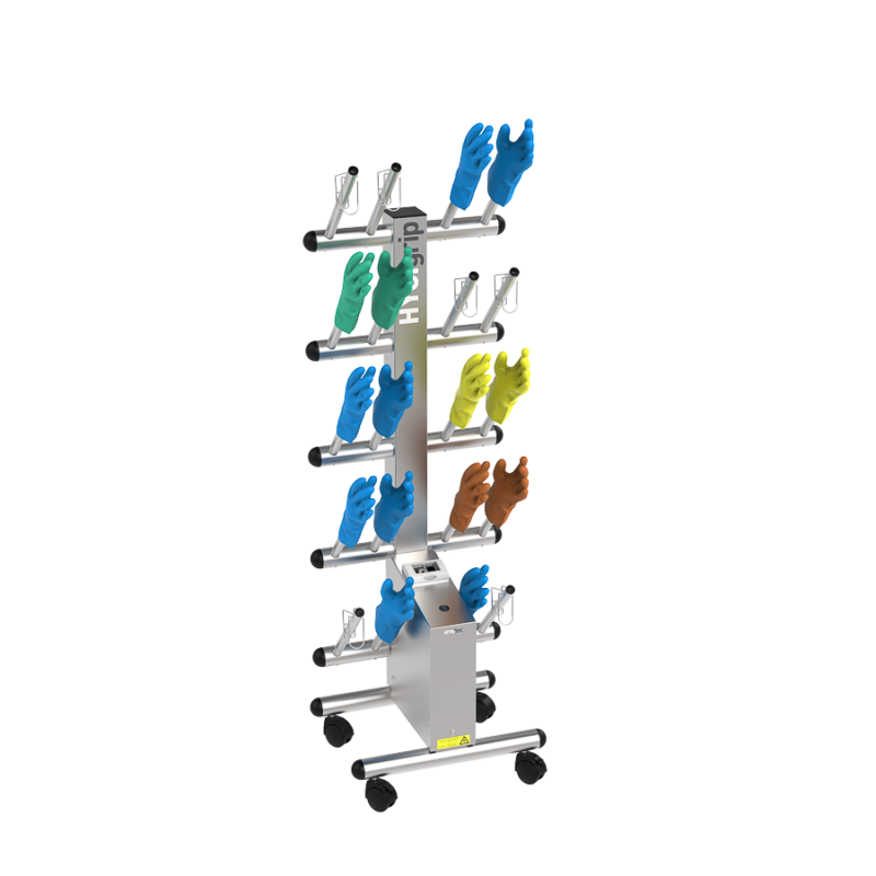 Secador de guantes HYGIgrip para 10 pares, de un solo lado, en acero inoxidable 304L.