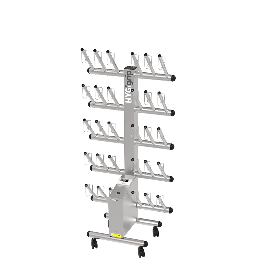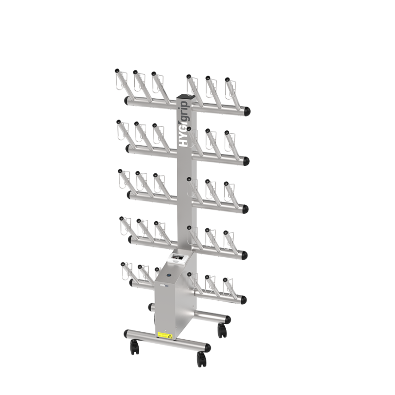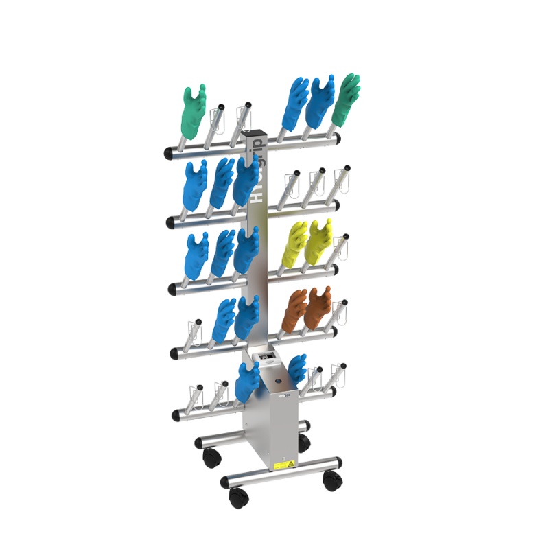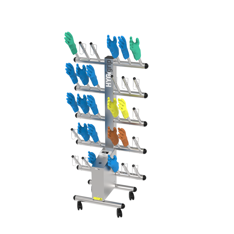 Secador de guantes HYGIgrip para 15 pares, de un solo lado, en acero inoxidable 304L.