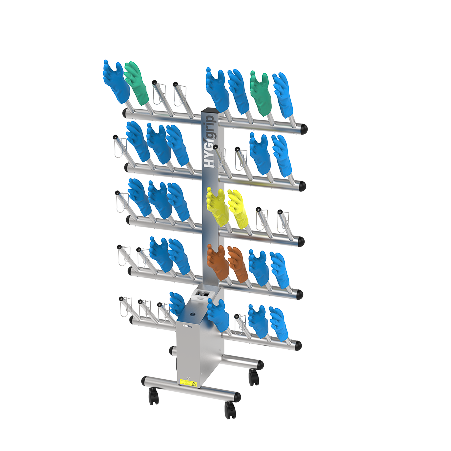 Secador de guantes HYGIgrip para 20 pares, de un solo lado, en acero inoxidable 304L.