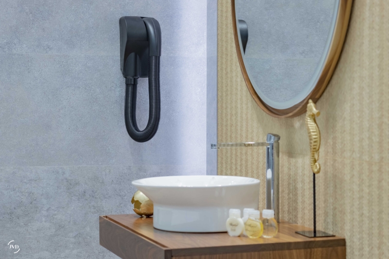 Secador de pelo Caraïbe base con temporizador de seguridad 15min., potencia 1000 W , empuñadora patentada para facilitar el peinado. Instalación en volumen 3. Garantía 3 años. Negro Mate.