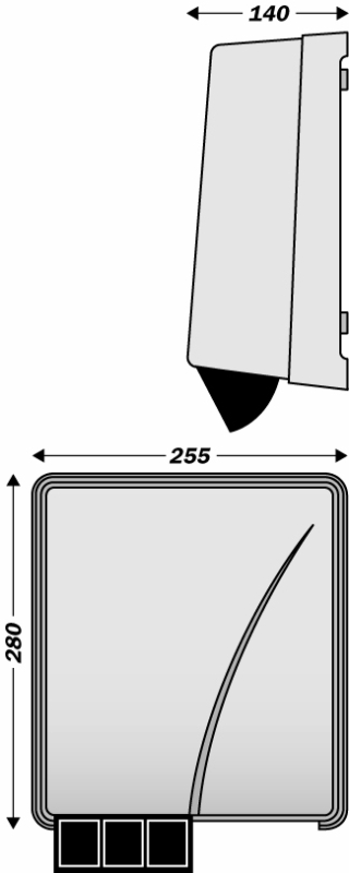 Dimensiones | Alto del producto (mm) : 280Ancho del producto (mm) : 255Profundidad del producto (mm) : 140 |
