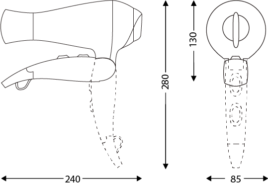 Secador de pelo LINEO pistola blanca 1600 W,plegable con 6 configuraciones de secado y un sistema ionizante. Instalación en volumen 2.