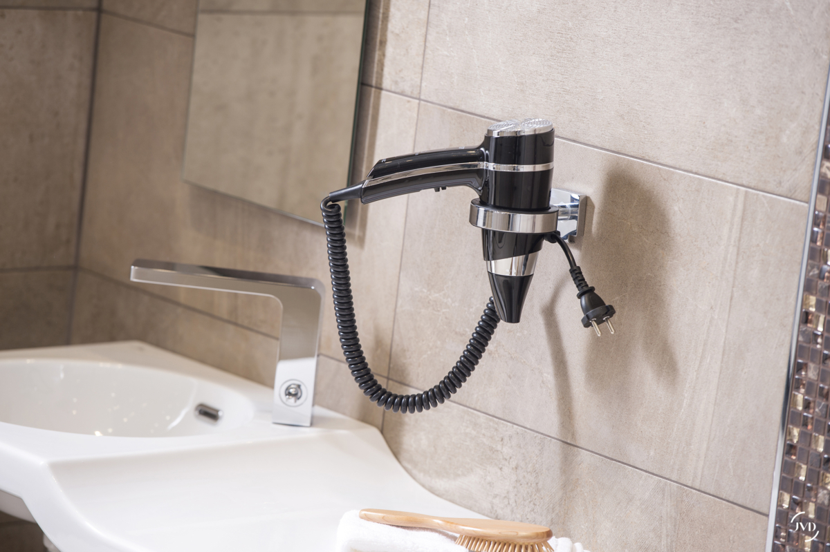 - Posibilidad de bloquear el cable de alimentación con el soporte de pared cromado