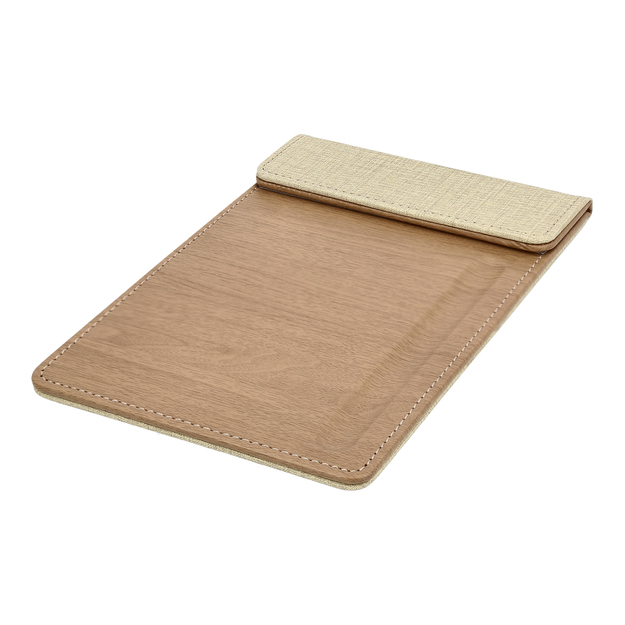 Soporte para bloc de notas Adesign Kaizen: combinando estilo y practicidad, este soporte en cuero sintético con acabado bimaterial (lona beige y madera clara) permite mantener un bloc de notas al alcance de la mano. Ideal para aportar un toque de elegancia y funcionalidad en las habitaciones de hotel.